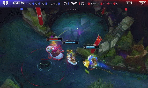 第一局:Chovy岩雀三抬Peyz月男美输出GEN先下一城