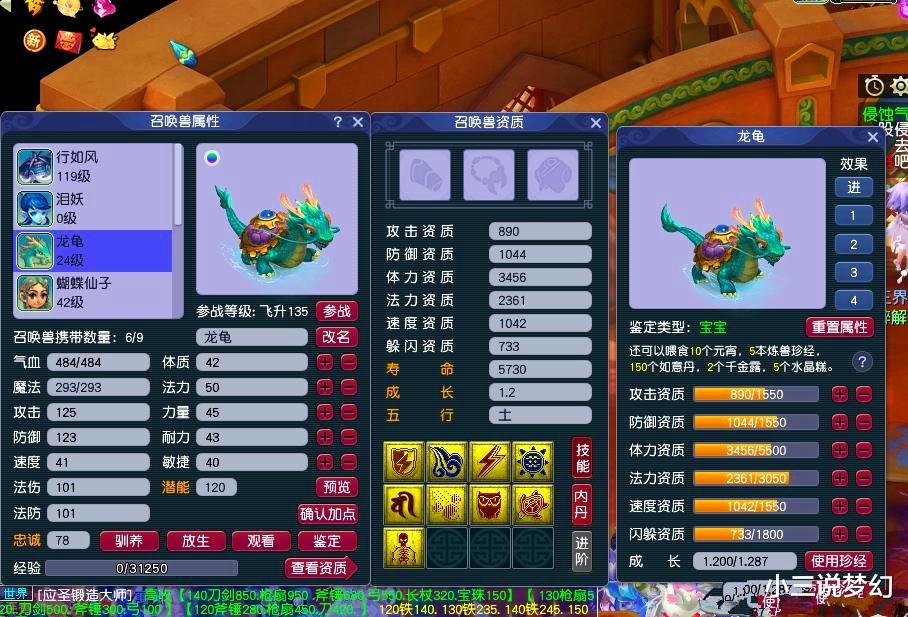 上面是一只拥有着9个技能的龙龟,将只有一个必带技能的龙龟合到9个是很不容易的,更别说这只龙龟还拥有着净台妙谛和法术防御这两个特殊技能呢,上面的这只龙龟很值钱,但是上面的这位玩家却不知道怎么出售,因为合出这只龙龟的是一个低等级的角色,还达不到龙龟的寄售等级。