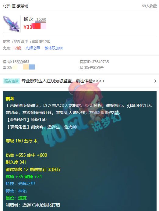 紫禁城服务器的160神佑光辉剑,体敏双加了66点,最终的交易价达到了惊人的33个。从目前175的PK版本来看,最适合用这把武器的门派肯定是化生寺。